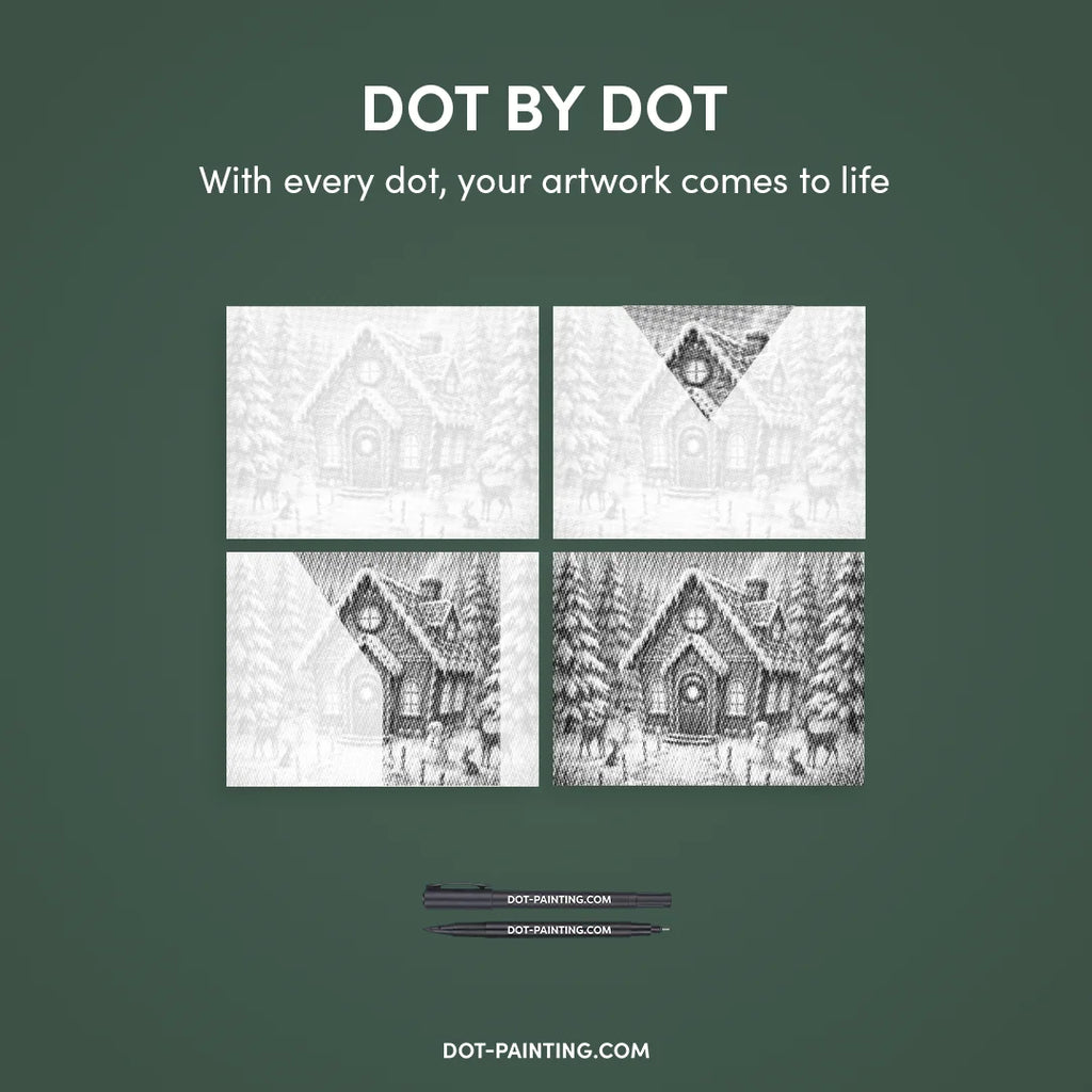 Uitpakken, een fijn plekje zoeken en beginnen met stippen.