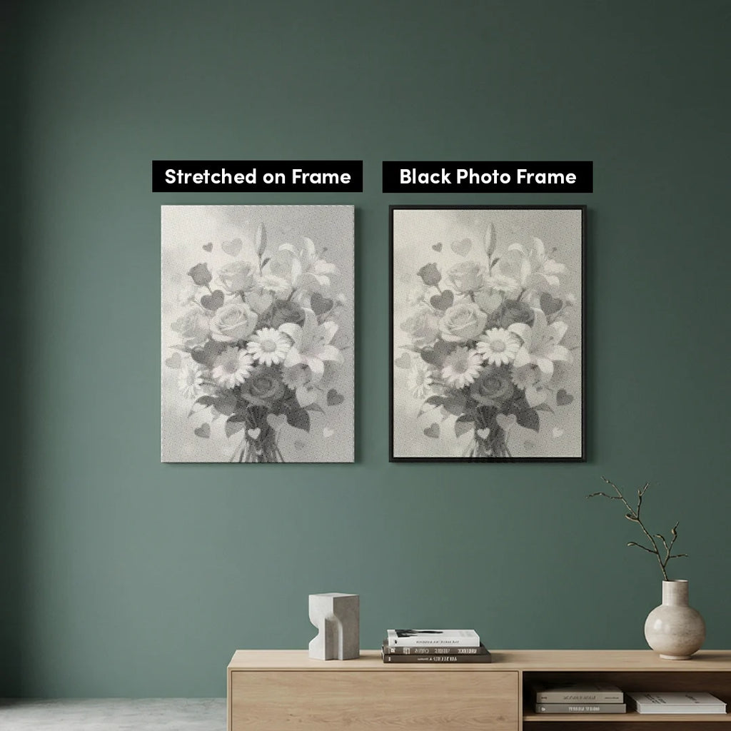 Premium Canvas: High-quality canvas featuring the Hearts and Flowers pattern. We ship it rolled in a sturdy tube, so you never have to deal with annoying creases.