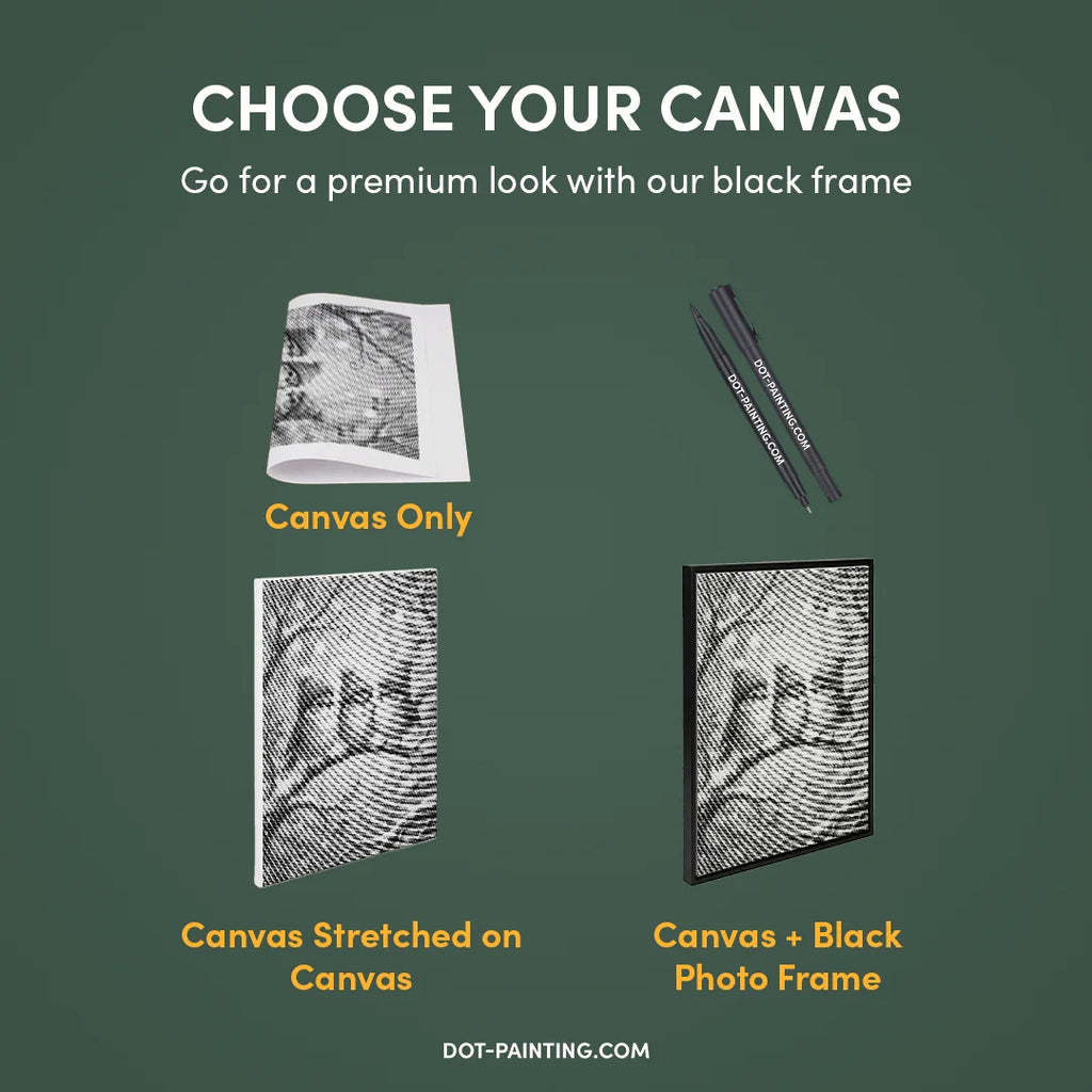 1x Premium canvas (opgerold): Hoogwaardig canvas met het door jou gekozen design. We verzenden het opgerold in een stevige koker (nooit gevouwen), zodat je start met een glad, kreukvrij oppervlak.