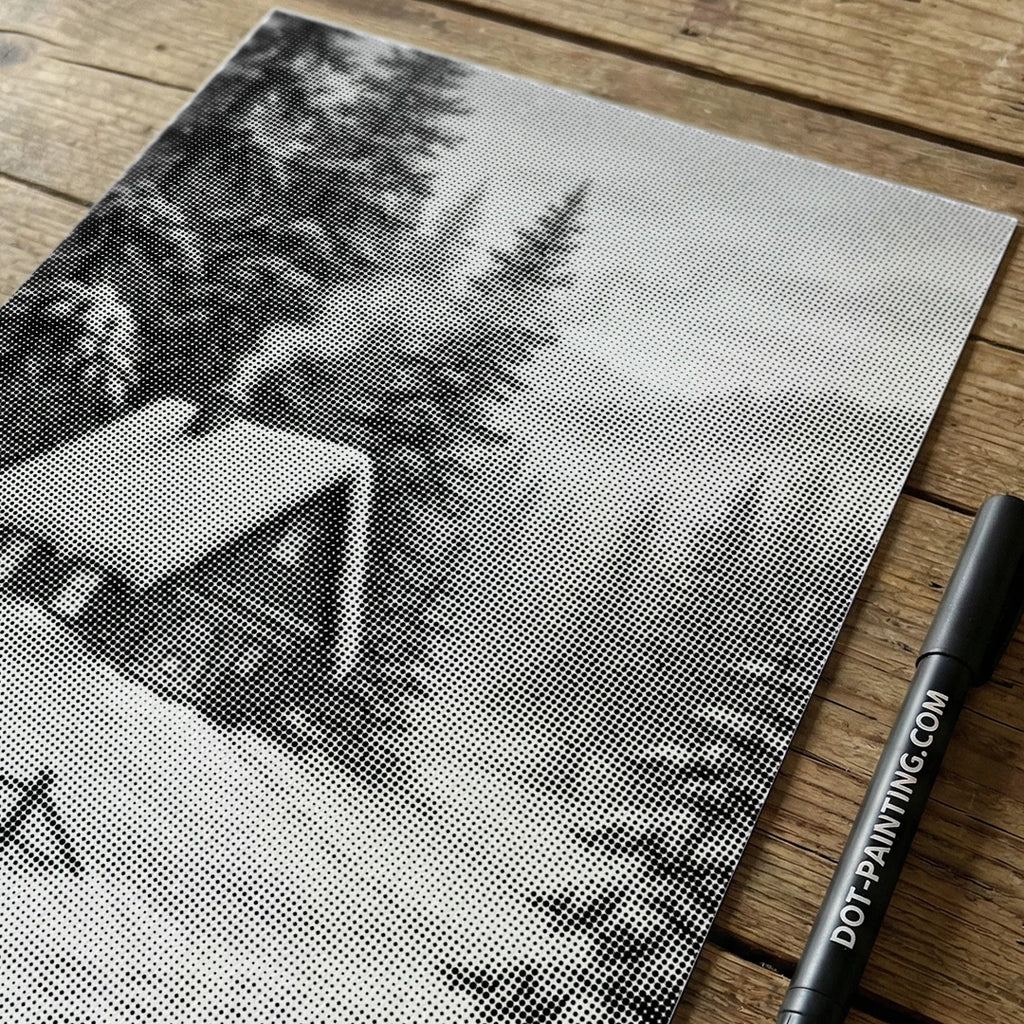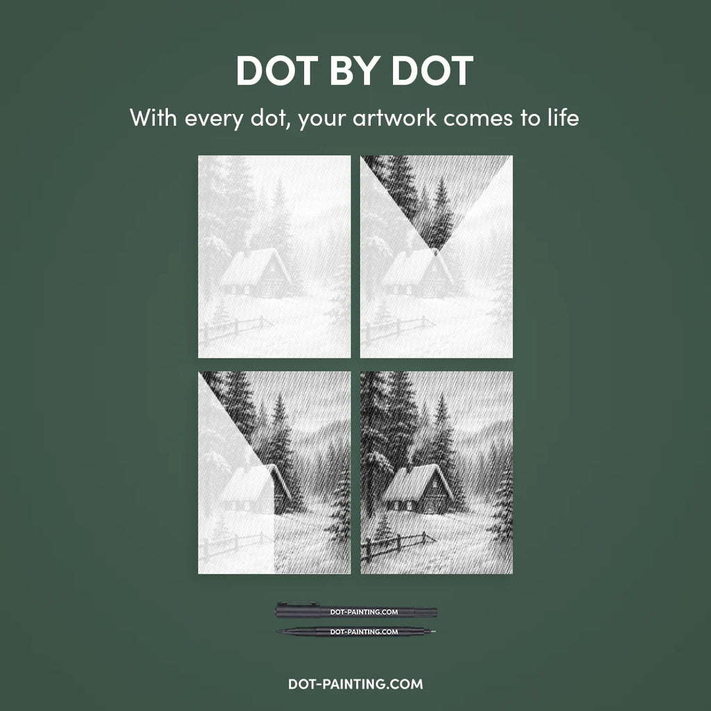 Uitpakken, een fijn plekje zoeken en beginnen met stippen.