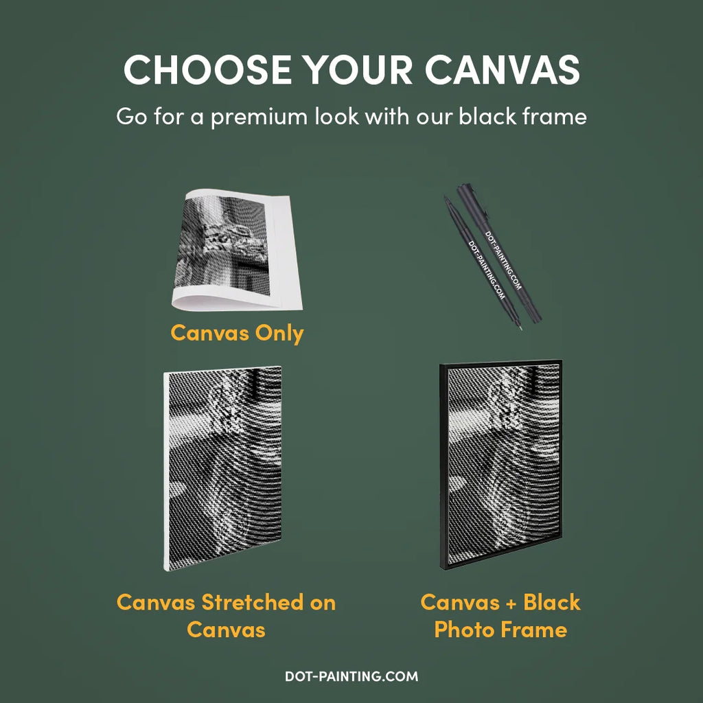• 1x Premium Canvas (Rolled): High-quality canvas featuring your chosen design. We ship it rolled in a hard tube never folded so you start with a smooth, wrinkle-free surface.