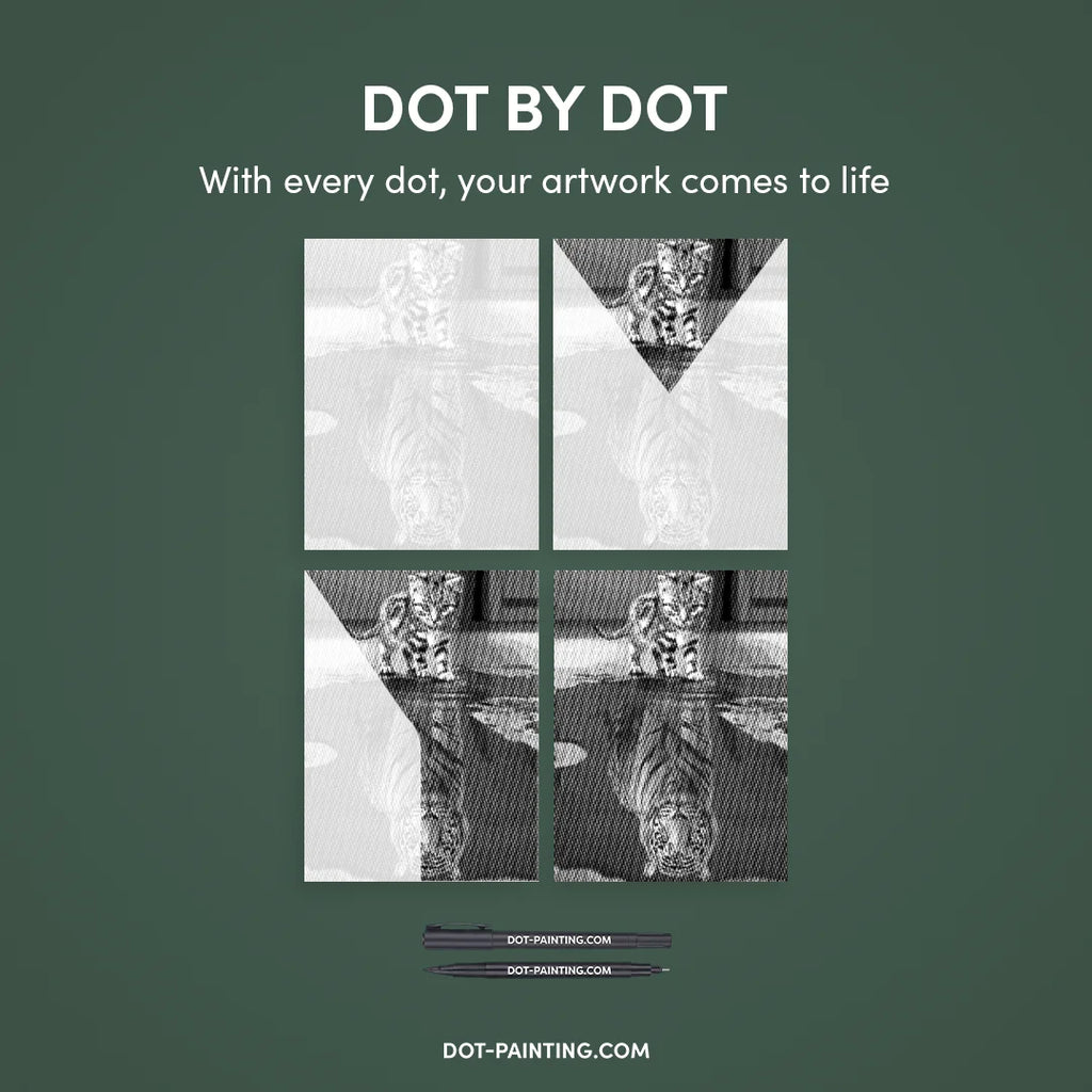 Cat With Tiger Reflection Dot Painting