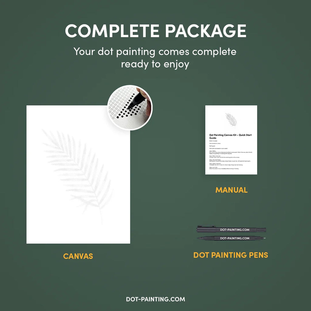 With Dot Painting, you use high-quality markers to bring the Palm Leaf Dot Painting kit to life, one dot at a time. It’s cleaner, easier, and incredibly satisfying.